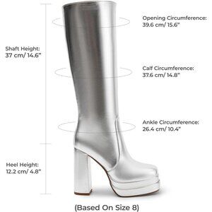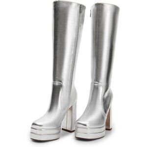 ⚡Women Metallic Silver Faux Leather Platform Heeled Knee High Chunky Tall Boot