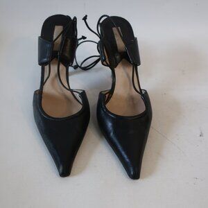 Women Michael Kors Black Leather Slingback Laced Back Pointy Heels 5