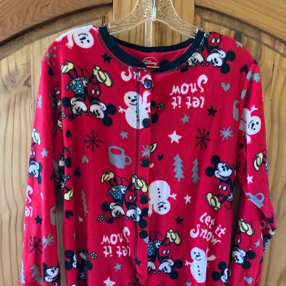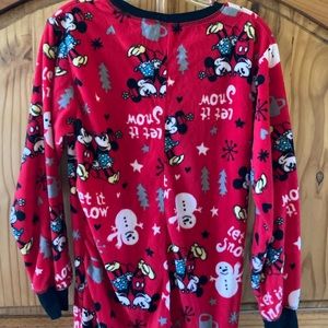 Women Mickey Minnie Mouse red ‘Let it Snow’ one piece footed pajamas size S