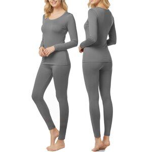 Women Microfiber Fleece Thermal Set Base Layer Top & Bottom, Winter Warm, Gray