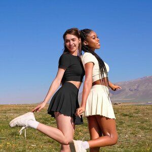 Women Mini Skirts 2 in 1 Flowy Basic Versatile Stretchy Flared Casual A-line Ski
