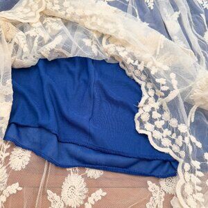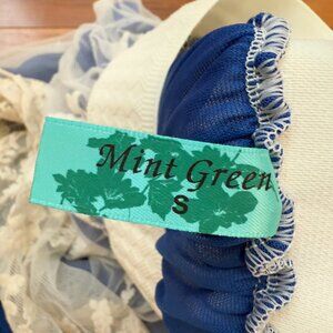 Women Mint Green Lace Floral Midi A Line Skirts in Blue White Size Small