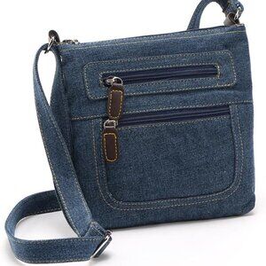 Features: Small Size :7.9 x 8.7x 1.2 inches Lightweight : 0.37 pounds Structures : 1 main zip compartment , 2 exterior small zip pockets. Large Capacity: Cell , small wallet, lipstick, glasses, tissues, keys, power bank or other things you carry. Material : Soft Washable Denim, Cotton lining This cross body bags is the perfect everyday travel purse. At a small size it is easy to carry around.