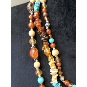 Women Multistrand Beaded Necklace Mixed Gemstones Turquoise Amber Look