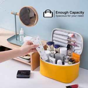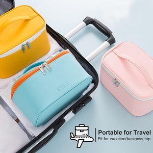 Stylish and bright color design makes it a super cute makeup bag for lady and womens, also a good choic for ladies, it is simple and lightweight, can hold all your daily makeup products securely you need for your . Wide and firm handle for easy carrying