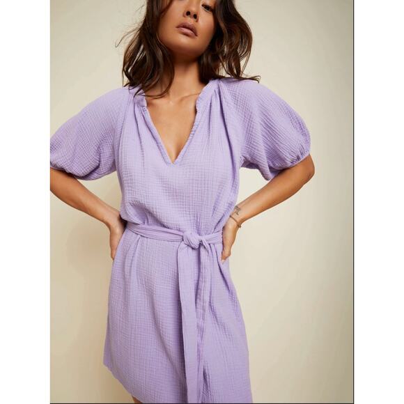 Women Nation LTD Finley Belted Easy Dress XS Lavender Puff Sleeve V Neck