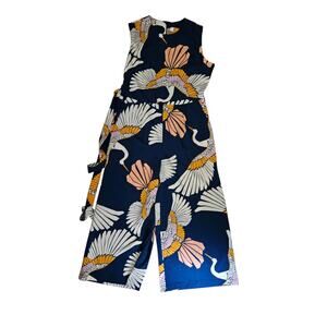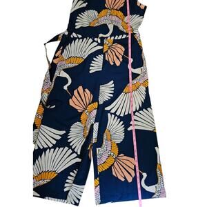 Women Navy Blue Orange Peach Floral Romper Size Large