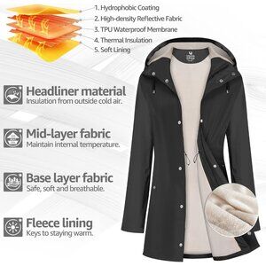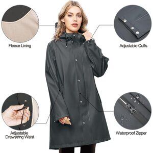Women Navy Fleece Long Hooded Waterproof Rain Windbreaker Trench Coat Outdoor