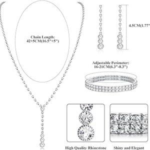 ✦BRIDAL JEWELRY SET✦--Gorgeous wedding jewelry set for women, come with 1pcs rhinestone Y pendant necklace, 1pcs stretch bracelet and 1pair long dangle earrings. Elegant and dazzling crystal design, giving you beautiful and luxurious look to match any outfits, stand out in the crowd and get more compliments.