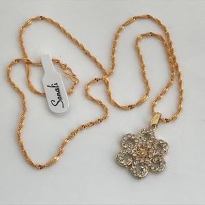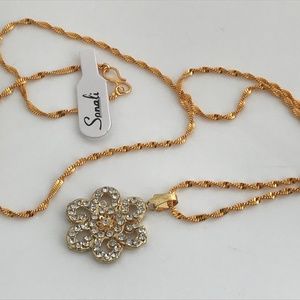 Women Necklace Gold Tone Fashion Bollywood Pendant Crystal Accents With Chain