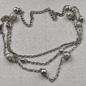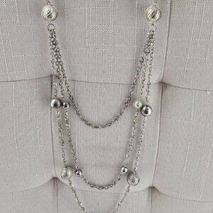 Women Necklace Long Chain Statement Silver Tone Fashion Jewelry