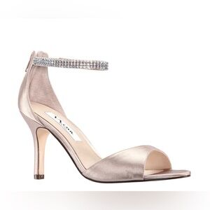 Women Nina Champagne Crystal Satin Ankle Strap High Heel Sandal 7.5M