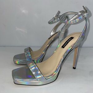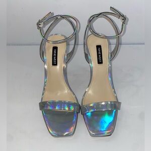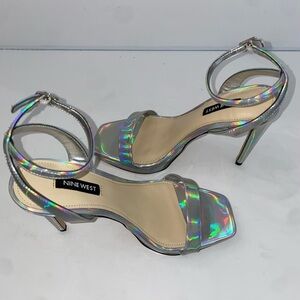Nine West Zadie Silver Multi Ankle Strap Size 7.5M Sandal Heels