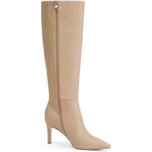 Women Nude Faux Leather Pointed Toe Tall Stiletto High Heel Zipper Dress Boots