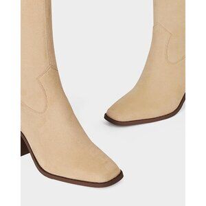 Women Nude Polyurethane Knee High Square Toe Side Zipper Block Heel Tall Boots