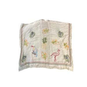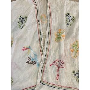 Women OS Soft Surroundings White Gauzy 1BB81 Embroidered Kimono Shrug Duster Top
