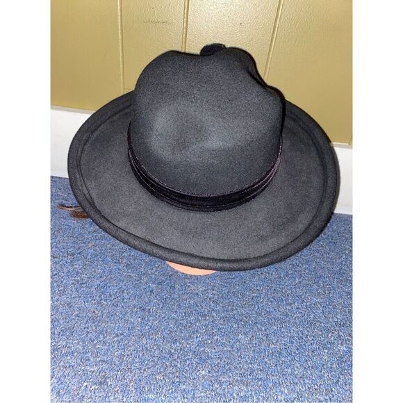 Women OS 100% wool brim hat w/satin ribbon w/ floral appliqué on front of hat