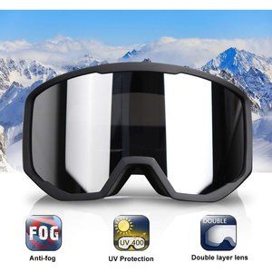Dual Polycarbonate lens material, all lenses are Anti-fog & Anti-glare coating that provides 100% protection against fogging. And Impact resistance TPU frame and highly optical clarity lens with 100% UV protection provides guarantee for fast and exciting skiing.
