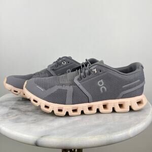 Women On Cloud 5 Gray Athletic Casual Running Sneakers Zinc I Shell. Labeled a size 7.5 in women's and fits true to size. High quality and in good used condition, some light general wear from use. Gray color with shell colored tread. Perfect for wearing casually, running, walking, or when you're going to be on your feet a lot. Elastic laces.