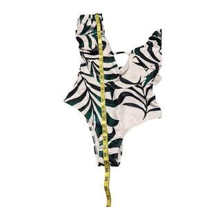 Women One Piece Swimsuit V Neck Ruffle Bathing Suit Padded Leaves Small Summer