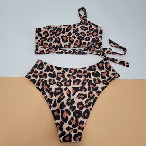 Women One Shoulder High Waisted Bikini Tie High Cut Two Piece Swimsuit NEW