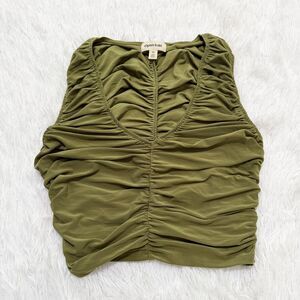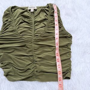 Women Open Edit Ruched Sleeveless V-neck Top In Olive Sphagnum Size Extra Small