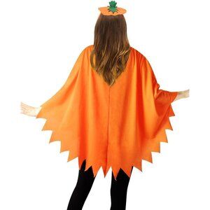 Women Orange Pumpkin Costume Halloween Poncho for Adult Costume with Accessories