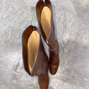 Women POLLINI Vintage Brown All Leather Riding Boot Italy SZ 38 embellished