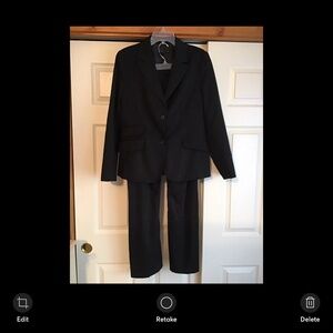 Size 12 Black two button blazer 3 pockets Black matching pants Front zip and closure flare legs