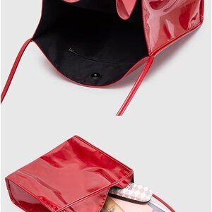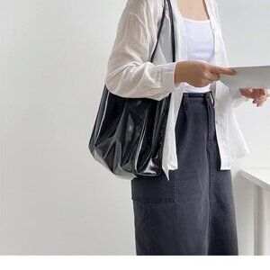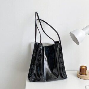 Women Patent Leather Bag Soft Tote Bag Shiny Shoulder Bag Minimal Purse Fashion