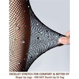 Create Your UNIQUE STYLE- Come with different fishnet patterns to jazz up any outfit.- Style them with mini-skirts, pencil skirts and a pair of stiletto booties or heels to add a hint of sex appeal.- Couple them with an oversize sweatshirt or a T-shirt dress & a sneaker for a casual look.- Wear them with a pea coat and a cute set of boots to pull off the look of Fall & Winter.- Pair them under worn out or ratty jeans, creating a playful look that is perfect for a night out.Enhanced Comforts- These fishnet tights will snugly hug your legs with their stretch-fit, won't bunch up or sag.- Wide elastic waistband for added comfort & ensures the tights stay up without slipping down.- Feature a slightly reinforced toe for extra durability and comfort.- The quality, the style, and the classic color make these fishnet tights