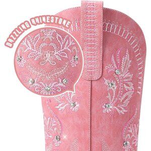 Retro and Fashion Lumeheel women's cowgirl boots epitomize the flawless fusion of vintage western and modern fashion, ensuring you stride with confidence and charisma wherever your journey takes you. Wide calf cowboy boots for women boast timeless embroidery designs, sparkling rhinestones, and a classic pointed toe, elevating your style with a captivating blend of vintage charm and modern allure.