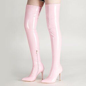 Women Pink Patent pu Side Zipper Stiletto High Heel Over The Knee Comfy Boots
