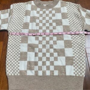 Women Plaid Checkered Sweater Long Sleeve Pullover Loose Crew Neck Knit Sz Small