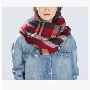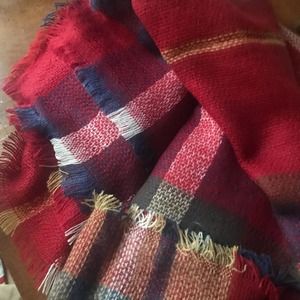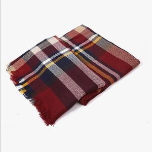 Women Plaid Tartan Scarf Large Blanket Wrap Shawl Red Multicolored One Size