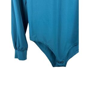Women Plain Long Sleeve Slim Fit Bodysuits Basic V Neck Casual Jumpsuit Teal- si