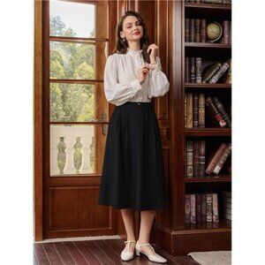 Elegant Design: This inspired A-line skirt features a flattering high waist design with elastic back waistline for comfortable all-day wear, complete with front zip closure and button detail for a classic look.