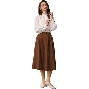 A Line skirt features beautiful pleats and fabric blend that create a graceful swing silhouette, adding movement and feminine charm to your outfit while providing a flattering look for all body types and slight stretch for ease of movement
