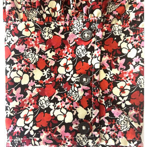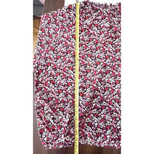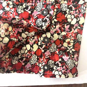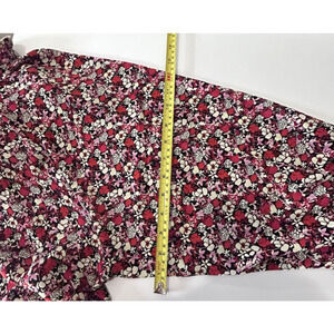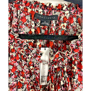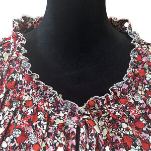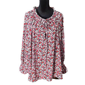 Sanctuary Georgette Woven Red Cream and Black Floral Print Blouse. Size is 2X with a tie key hole and neck ruffle with 3 buttons on cuff.