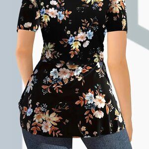 Brand New Women's Plus Size Elegant Floral Print Twist Tee Summer Vacation Blouse Top 22W
