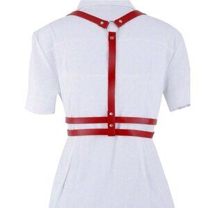 Women Plus Size Gothic Style Red PU Leather Sexy Harness Waist Belt