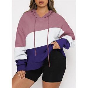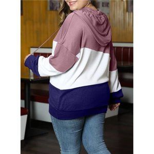 Women Plus Size Hoodies Sweatshirts Long Sleeve Colorblock Drawstring Hooded Top