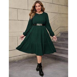 Women Plus Size Knit Sweater Dress Winter Midi with Belt Long Sleeves