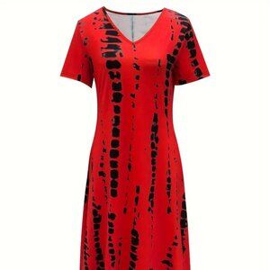 Women Plus Size Tie Dye Dress Loose/Relaxed Fit Summer Vacation Beach Dress 22W