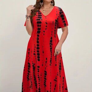 Brand New Women Plus Size Tie Dye Dress Loose/Relaxed Fit Maxi Summer Vacation Beach Dress 22W