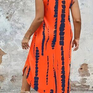 Brand New Women Plus Size Tie Dye Dress Loose/Relaxed Fit Maxi Summer Vacation Beach Dress 14W 18W 20W