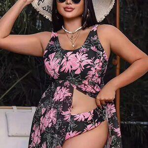 Brand New Women's Plus Size Peach Tropical Print 2 Piece Swimsuit Bathing Suit Tankini Set 14W and 16W