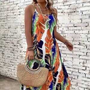 Women Plus Size Vibrant Print Vacation Summer Holiday Beach Maxi Dress 14W -20W