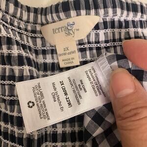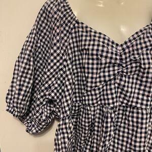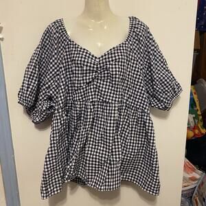 Women Plus Sz 2X Blouse Tiered Babydoll Puff Sleeve Top Cotton Gingham Bohemian