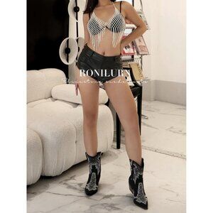 SIZE: The heel height of rhinestone boots is 6.5 cm/2.5 inch. We recommend a half size down if you have a small foot.